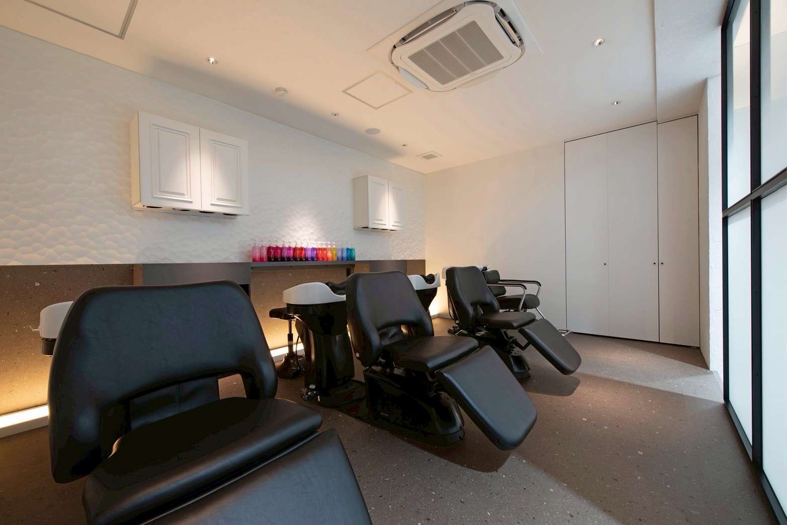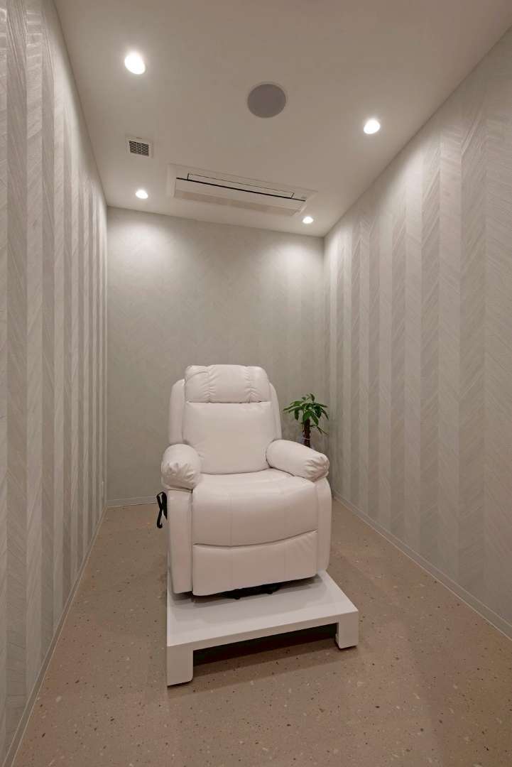 また、アイラッシュルームは淡いグリーンの壁紙と調光照明を採用し、静かで落ち着いた個室空間を実現しました。
